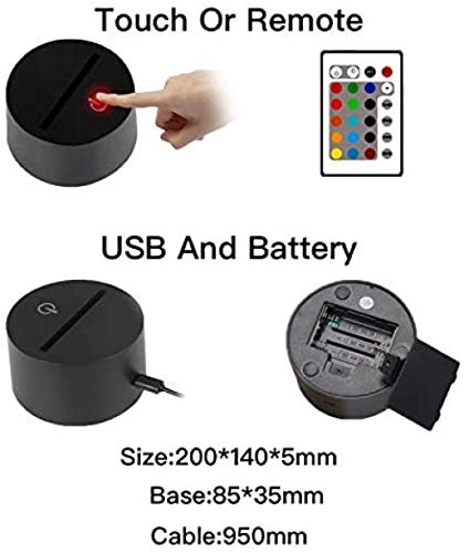 Colori ricchi: questa luce notturna 3D può avere più di un colore. Ha sette colori per cambiare. Il pulsante a sfioramento può passare da diversi colori o modalità di lampeggiamento dei colori. Rosso-verde-blu-giallo-ciano-viola-bianco-tutti i colori lampeggiano in sequenza per soddisfare le vostre diverse esigenze.