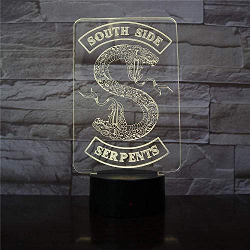 Boutiquespace 3D Illusione Lampada Led Night Light Riverdale Badge Snake Logo Sud Serpenti Decor Segno Cose Riverdale Accessori Lampada Da Tavolo Colori Regalo