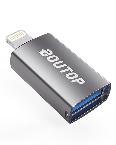 BOUTOP Adattatore da Lightning a USB 3 per iPhone, iPad, iPod - [certificato Apple MFi ] Adattatore USB OTG compatibile con fotocamera digitale, chiavetta USB, lettore di schede, mouse, tastiera, ecc.