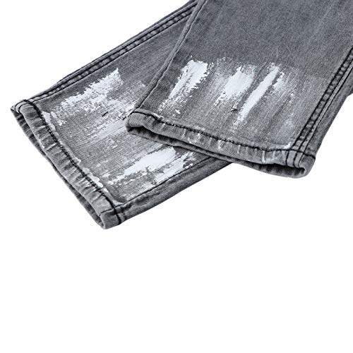 Bowanadacles Jeans skinny invecchiati da uomo slim fit patchwork jeans strappati fori pantaloni in denim elasticizzato jeans da motociclista strada, Grigio, XX-Large