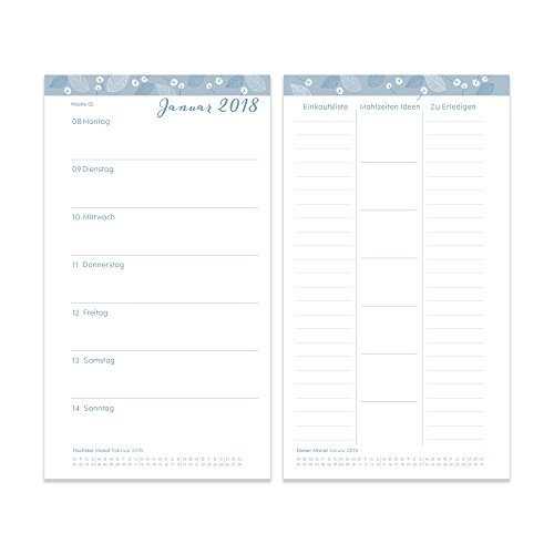 ZUSÄTZLICHE FUNKTIONEN ZUR ORGANISATION DES TÄGLICHEN LEBENS - Gegenüber jeder wöchentlichen Kalenderseite ist Platz zur Menüplanung sowie für Einkaufslisten und Notizen