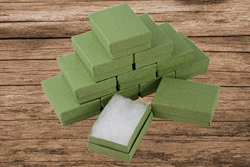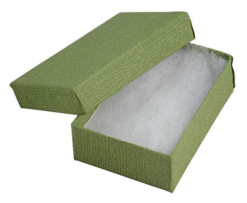 Boxdisplays - 24 scatole rettangolari in lino verde, in cartone per gioielli, anelli, orecchini, ciondoli, medaglie, confezione regalo, 82 x 58 x 26 mm