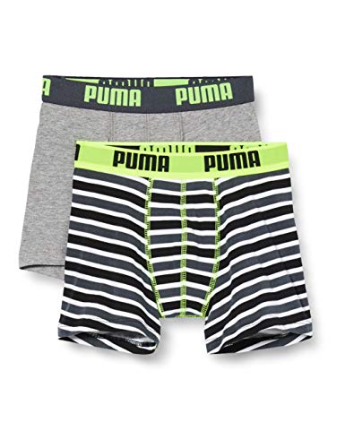 PUMA Boxer con Stampa Classica, Giallo Fluo/Grigio, 146/152 cm (Pacco da 2) Bambini e Ragazzi