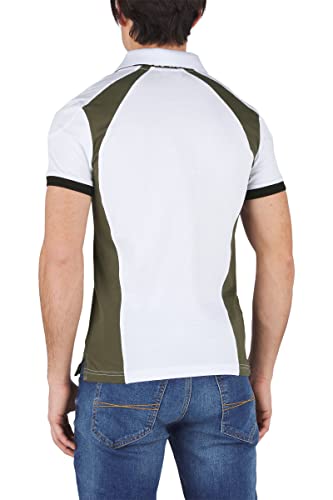 BOXEUR DES RUES - Polo Bianca in Cotone Elasticizzato con Inserti Verde Militare, Uomo, Bianco, M