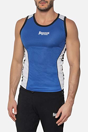 BOXEUR DES RUES - Canotta Aderente Blu con Logo, Uomo, XL