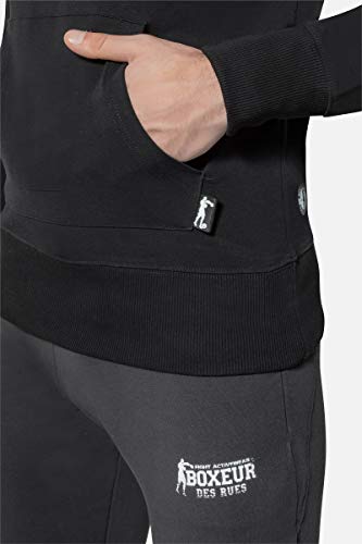 Streetstyle E Comfort Caratterizzano Questa Tuta Sportiva In Cotone Elasticizzato. Il Capo È Composto Da Una Felpa Nera Provvista Di Cappuccio Con Coullisse E Maniche Con Puntapollice. Il Maxi Logo Boxeur Des Rues All'altezza Del Petto È Stampato A Contrasto. Il Taglio Particolare Dei Pantaloni In Felpa Garantisce La Massima Vestibilità: La Tenuta In Vita È Assicurata Da Una Coulisse Mentre Sulle Caviglie Presentano Dei Polsini. Un Modello