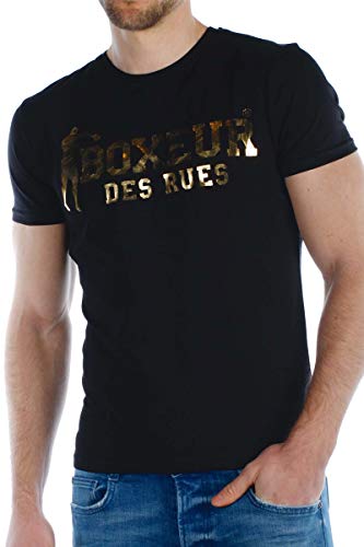 BOXEUR DES RUES - T-Shirt Girocollo Nera E Oro con Maxi Stampa Frontale, Uomo, XXXL