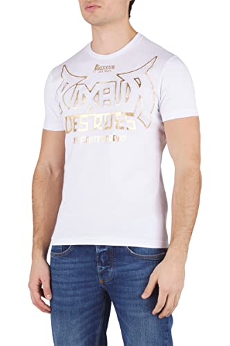 BOXEUR DES RUES - Tshirt Nera in Cotone Elasticizzato con Stampa Oro, Uomo, Bianco, XXL