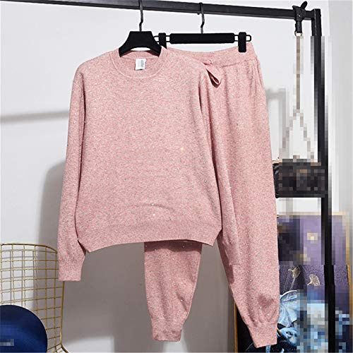 BoxJCNMU Set di Due Pezzi Primaverili da Donna con Strass, Maniche Lunghe, Maglione Lavorato a Maglia, Pantaloni, Tute da Donna Black XL