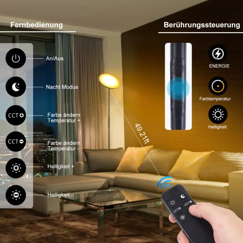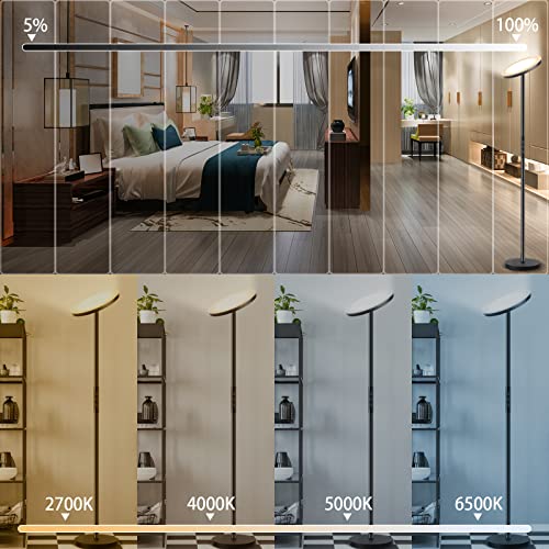 【Design moderno & funzione di memoria】 L'adozione della superficie opaca ammorbidisce la luce, più elegante, semplice ma non semplice. È la lampada perfetta e le decorazioni squisite per le tue camere da letto, sala lettura, soggiorno o ufficio. Lampada da terra led può ricordare l'ultima impostazione, anche se la spegni o l'alimentazione viene interrotta, può essere ripristinata all'ultima luminosità quando viene riaccesa.