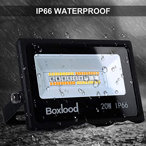 Boxlood Smart faretto led funziona con Alexa/Google Home, 20 W RGB 16 milioni di colori, luce bianca fredda dimmerabile, controllo APP, Impermeabile IP66 faretto led da esterno, 2 Pezzi