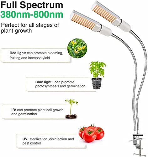 COLLO D'OCA PIÙ FORTE MIGLIORE DISSIPAZIONE : Chip led a più file a doppia testa, collo d'oca da 18 pollici, luce di semina rotante flessibile a 360 ° per regolare facilmente l'angolo e la distanza, area di illuminazione più ampia / illuminazione efficiente, far brillare più piante. Grazie alla staffa in metallo, la lampada può essere posizionata ovunque in casa o in ufficio.