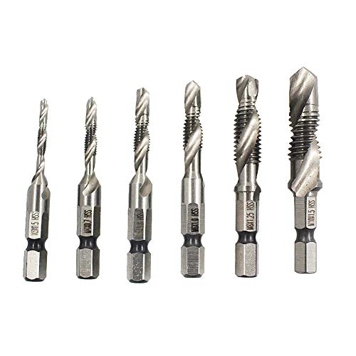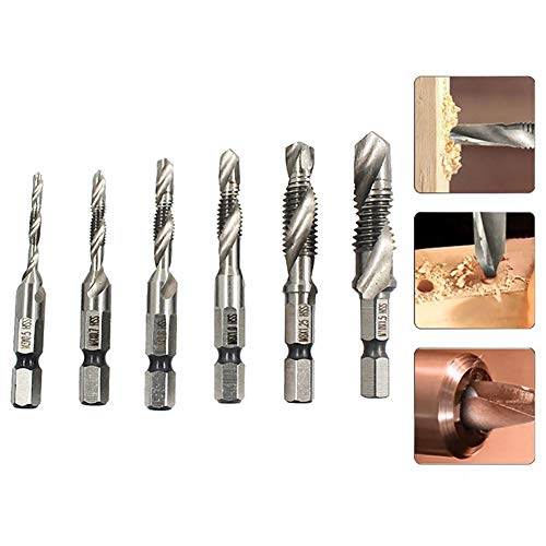 BOZONLI Punte ad attacco esagonale, M6 Punte Trapano Maschi, Countersink Tap Drill Bit HSS Imposta Combinazione Attacco Filettare Innesto Esagonale Tap Trapano