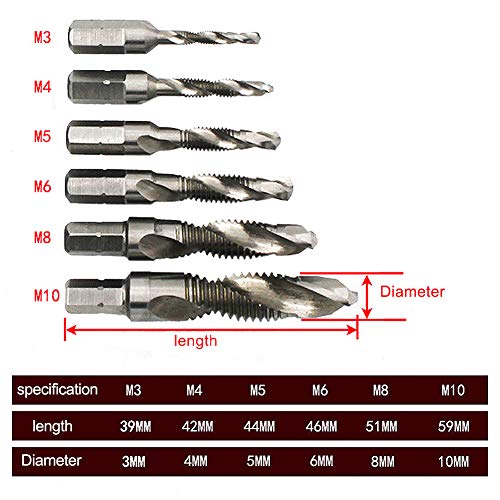 BOZONLI Punte ad attacco esagonale, M3 Punte Trapano Maschi, Countersink Tap Drill Bit HSS Imposta Combinazione Attacco Filettare Innesto Esagonale Tap Trapano