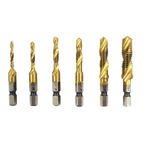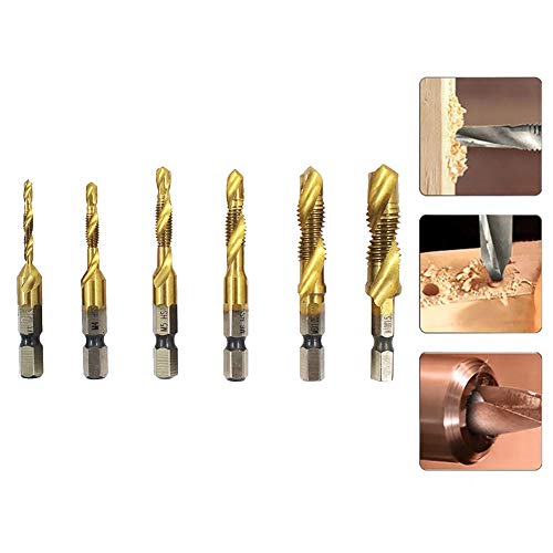 BOZONLI M8 Punte Trapano Maschi, Countersink Tap Drill Bit HSS Imposta Combinazione Attacco Filettare Innesto Esagonale Tap Trapano, Rivestimento in titanio