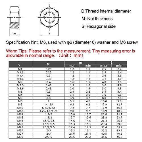 BOZONLI M2.5(2.5mm) Dadi di Sicurezza, Dado di Bloccaggio, Acciaio Inox Dadi Esagonali