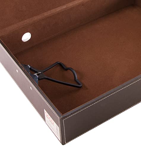 Generously sized rich brown faux leather Box file - Press button catch for securing lid - lock spring for clamping documents