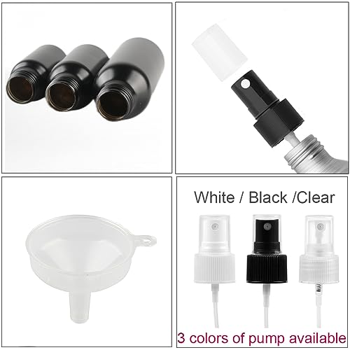 BPZXL 6 Pezzi 100ml Nero Alluminio con Nero Pompa Fine Nebbia Flacone Spray per Nebbia Portatile, Bottiglia di Profumo, Cosmetica, Viaggio Riutilizzabile