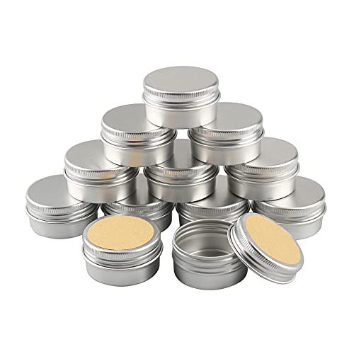 BPZXL 12 Pezzi Rotonda Contenitore in Alluminio da 30ml Argento con Tappo a Vite Vaso Barattolo Cosmetico Contenitori per Balsamo DIY Labbra Cosmetici Candele