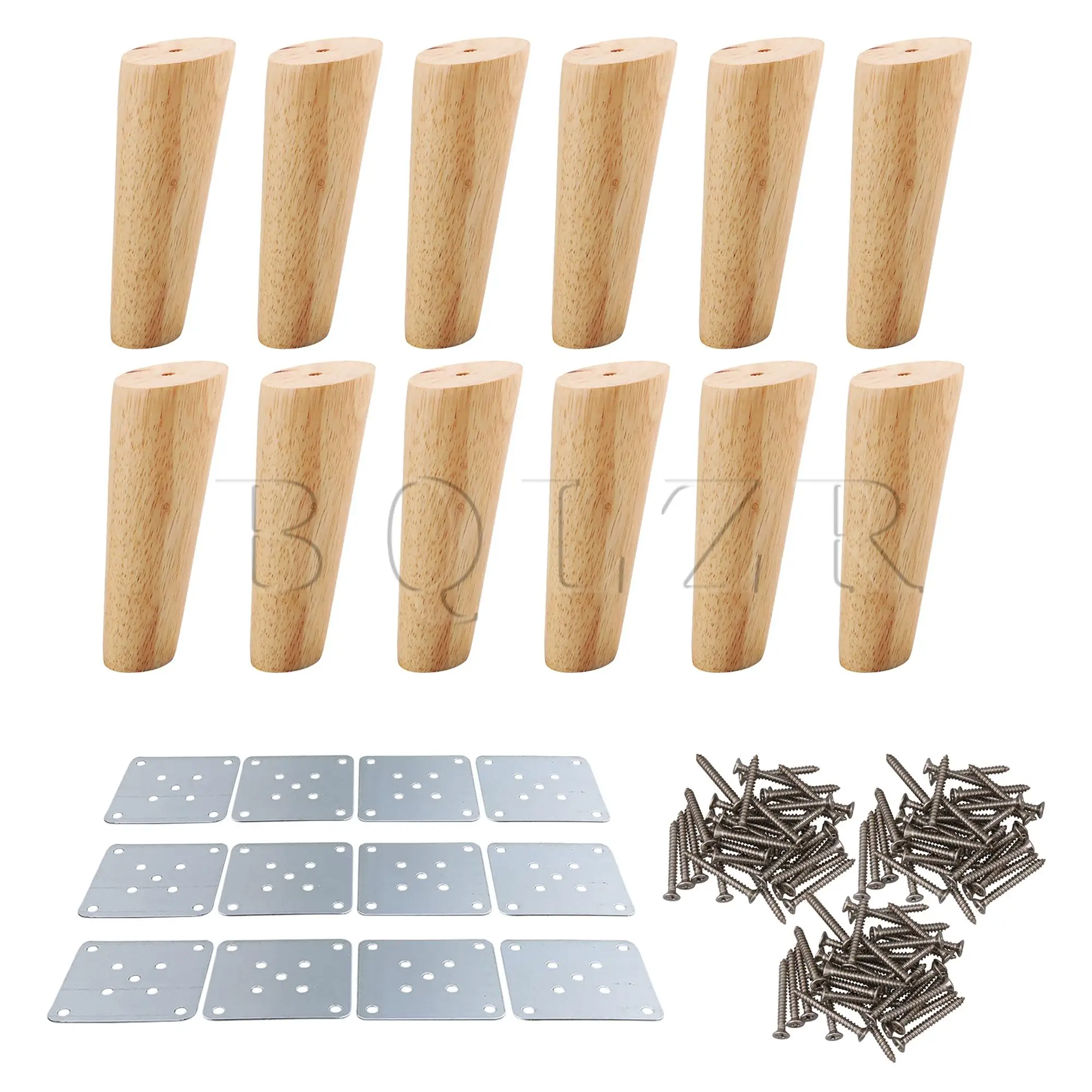 BQLZR 12 x Wood Color Oblique Tapered Furniture Legs for Sofa Cabinet H 15cm