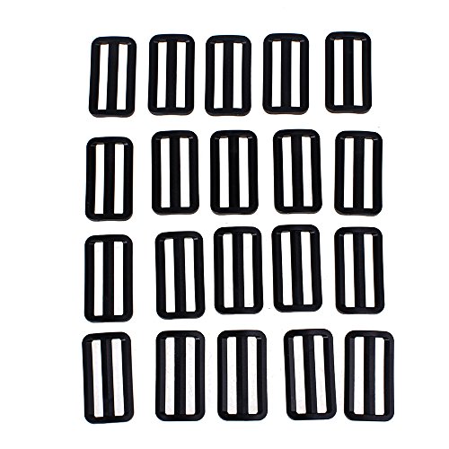 BQLZR Plastica nera Triglides Webbing Strapping Slides Fasteners Fibbie per 50mm Webbing Confezione da 20