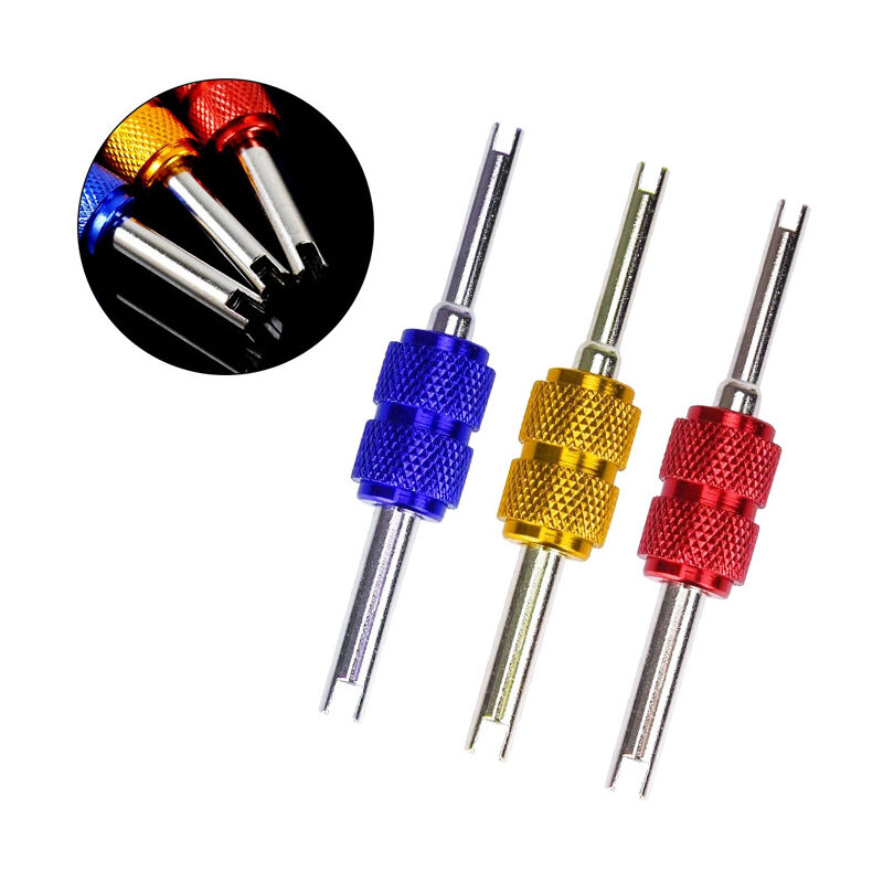 Universale: Doppia testa unica, testa di dimensioni diverse può adattarsi a diverse esigenze. Piccolo e conveniente: facile da trasportare e utilizzare. Puoi metterlo nella borsa degli attrezzi della tua auto. Perfetto strumento di riparazione per biciclette quando si va in bicicletta per viaggiare. Varie applicazioni: ideali per motociclette, camion, trattori, jeep, automobili, aria condizionata di molti modelli. Materiale: Realizzato in resistente lega di alluminio, è durevole. Design compatto e semplice, facile da trasportare e utilizzare. Formato: 13,8 * 75 mm. Facile da usare: lo strumento per valvole per pneumatici a doppia testa può sostituire rapidamente i nuclei. Inserisci lo stelo della valvola, rimuovi e installa facilmente i nuclei della valvola. Descrizioni del prodotto: 1.Strumento di riparazione perfetto per la valvola, aumenta la durata della valvola. 2 .Utilizzare per auto, camion, biciclette e motocicli. Funziona anche su pneumatici automobilistici, ecc. 3. Accessori