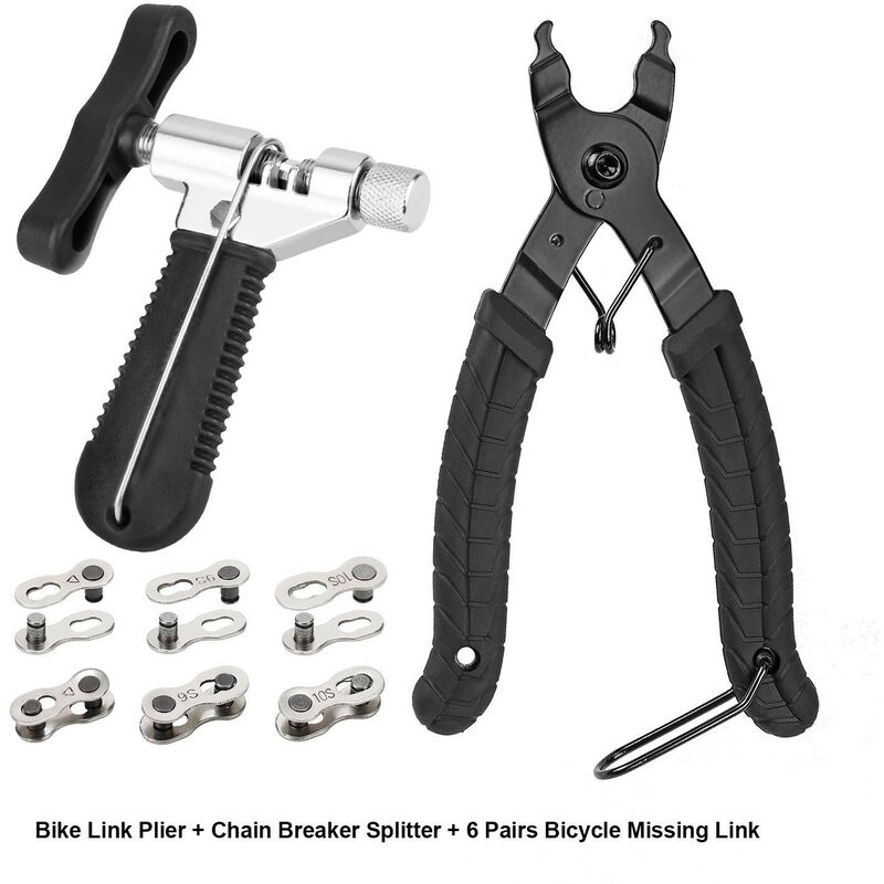 Set di strumenti per la riparazione di chian per biciclette : Abbinamento perfetto con tutte le catene di manutenzione della bicicletta, tra cui pinze per demolizione di catene, separatori di catene per biciclette e disintasamenti per catene, 6 paia di catene per biciclette mancanti 6, 7, 8, 9, 10 Pinza per catena principale: smontaggio rapido di catene di collegamento, strumenti all'avanguardia per l'apertura e la chiusura, demolizione di catene e connettori principali e sostituzione di tutte le catene di velocità, catene veloci di SRAM, KMC, shimano e catena di Clark < p> Estrattore per rivetti a catena per biciclette : Progettato specificamente per la rimozione e l'installazione di aste in 7 catene, 8, 9, 10 e velocità singola, intelligente, facile da rompere, facile da ricollegare, le scanalature uniche nella parte superiore consentono di vedere facilmente quanto sono distanti le clip sono state estratte e le catene tagliate dagli strumenti ritirate L'e-mail Lon mancante della