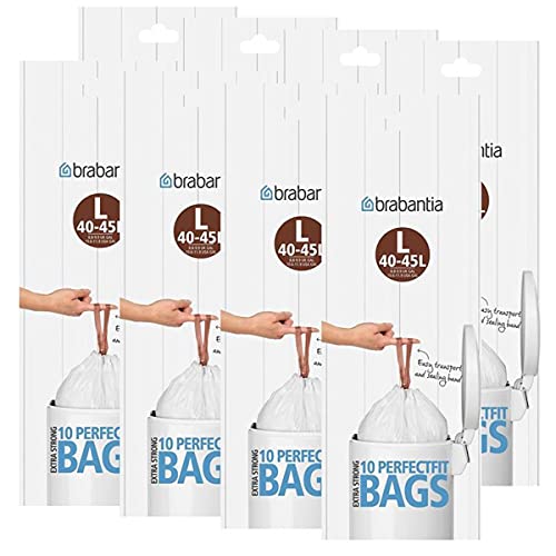Brabantia L Sacchetti per Spazzatura, 40/45L, Bianco, Rotolo da 10 Sacchetti (confezione da x 8)