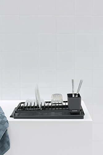 Brabantia Sink Side Scolapiatti con Scivolo, Alluminio, Dark Grey, 49.2 x 38.6 x 14.2 cm