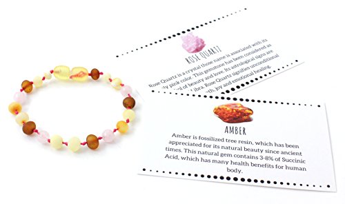 Bracciale Ambra Baltica Realizzato Con Perline Quarzo Rosa - Lunghezza 14 cm - Multicolore - Perline Ambra Crude - AmberStones