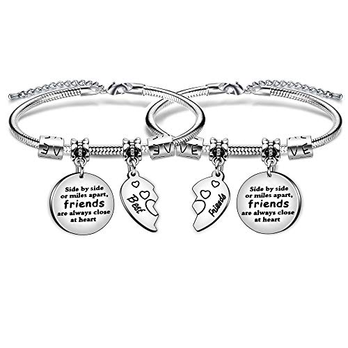 Bracciale dell'amicizia con ciondolo con scritte “Best Friends” e “Side By Side Or Miles Apart Friends Are Always Close At Heart”, idea regalo per sorelle, Acciaio inossidabile