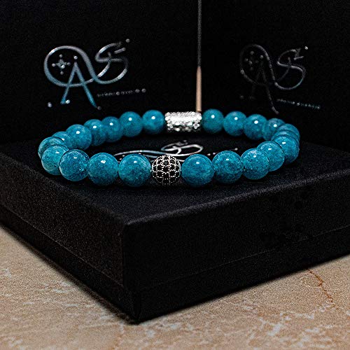 Jade - Bracciale in argento Sterling 925, con perle amazzite, 8 mm, zirconia cubica e Argento, colore: Amazonite, cod. 21022570