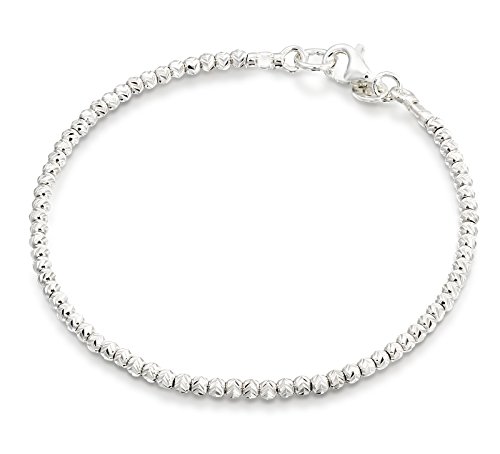 Bracciale in argento Sterling 925 placcato al rodio con perline da 2,5 mm, 7"