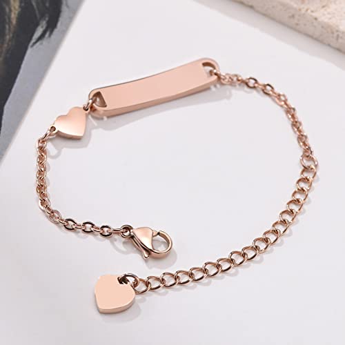 Vnox Bracciale Bambini Bambino Incisione Ragazza Braccialetti Personalizzati Figlia Personalizza Nome Bracciale con Ciondolo Cuore per Ragazzo Ragazza Regali di Battesimo del Bambino,12cm Oro Rosa