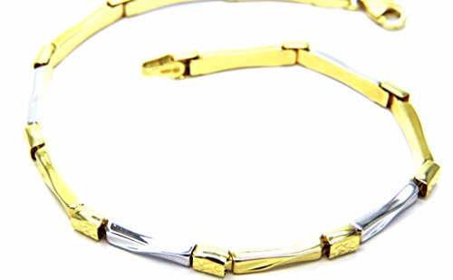 Bracciale Oro Bianco e Giallo 18kt (750) Barrette Segmenti Lucidi Bicolore Cm 20,50 Uomo