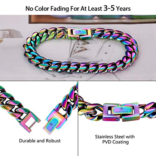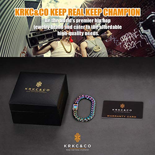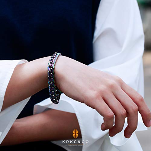 KRKC&CO Bracciale a Catena Cubana, Bracciale Cubano Acciaio Grosso Uomo in 18k Oro/Oro Bianco Miami Cuban Link Bracelet Iced Out in Stile Rapper Street-wear (19.05, 10mm colorato)