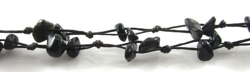 MGD - Nero Bracciale Cavigliera Onice - 2 Filo Bracciale Cavigliera - Bracciali Cavigliera Donna - Bracciali Cavigliera Della Pietra Preziosa - Bella Gioielli Fatti a mano - JB-0116A