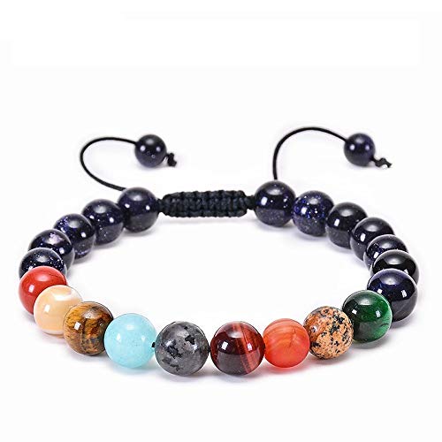 Bracciale Chakra Yoga,Gli Amanti Di Nove Pianeti Custode Chakra Stella 8Mm Bangle Energia Naturale Galaxy Sistema Solare Bracciale Ridurre La Paura Reiki Bracciali Di Corda Intrecciata Unisex Donna U