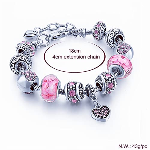 A TE® Bracciale Charms da Donna Beads cristalli Rosa Regalo Festa #JW-B129