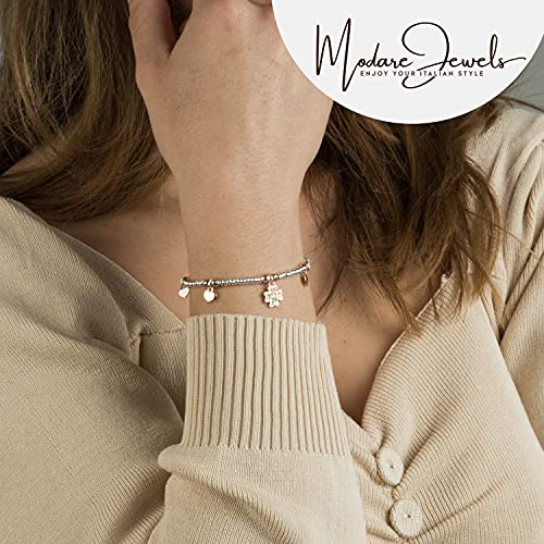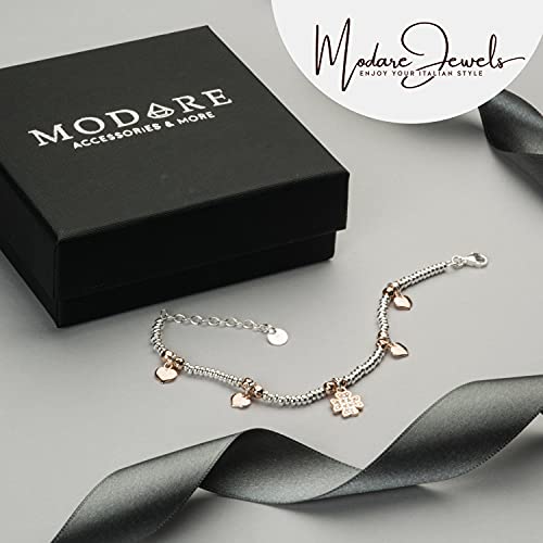 Bracciale con Charms a forma di Quadrifoglio e Cuori | Stile Dodo | Unisex | Oro Bianco e Oro Rosa | in Argento 925 Anallergico