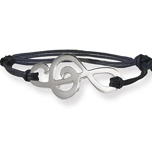 Bracciale con chiave di violino XL in argento massiccio 925/1000. Grammi 3.80. Cordino in cotone cerato nero in omaggio