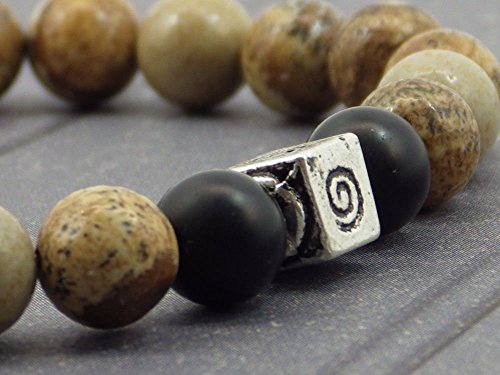 Bracciale Miss chichi Uomini perline di diaspro, perle e perline agata tibetano.