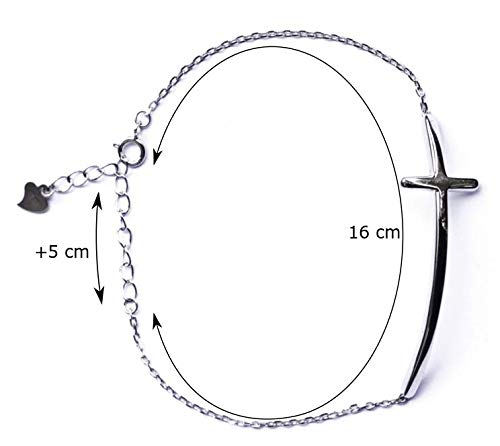 BoSa Bracciale con ciondolo a croce braccialetto religioso simbolo cristiano realizzato in argento sterling 925 lungo 21 cm senza nichel
