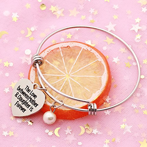 Bracciale con ciondolo a forma di cuore e perla, tema: madre e figlia, ideale come regalo per la Festa della mamma e di compleanno