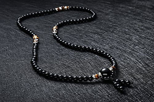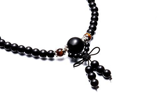 Bracciale-collana in ossidiana e occhio di tigre, con 108 perle da 6 mm, bracciale dei lama tibetani