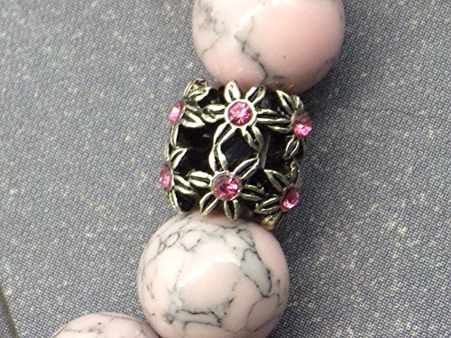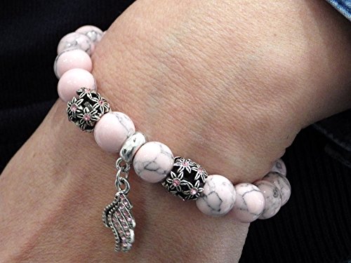 Bracciale color turchese rosa ricostituito perle e ciondoli a forma di penna con cristalli