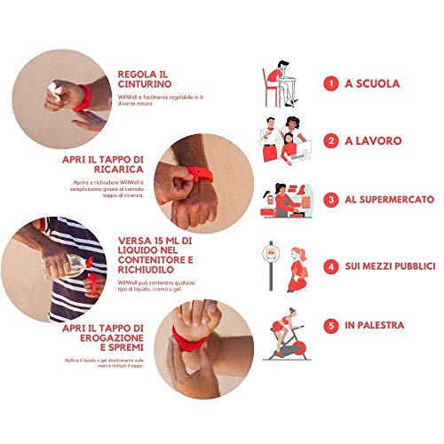 ⭐ DESING INNOVATIVO ⭐ Il design a prova di perdite assicura che il liquido venga svuotato solo se necessario. braccialetto porta disinfettante Contiene fino a 15 ml di liquidi ed è facile da ricaricare. ⭐ USARE IN SICUREZZA ⭐ Per garantire la sicurezza, i bambini devono usare il braccialetto sotto la supervisione di un adulto facendo attenzione a non ingoiare per errore il gel/liquido/crema con i quiali è stato ricaricato.