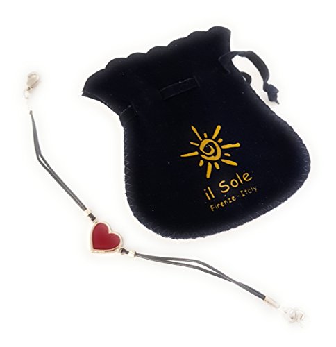 Bracciale cordino cerato con centrale ottone galvanica oro chiaro e cuore smalto rosso LOVE