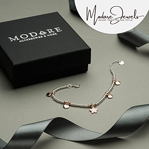 Bracciale donna argento 925 | Bracciale oro bianco e oro rosa placcato | Braccialetto donna cuori e stella | Bracciale ragazza anallergico