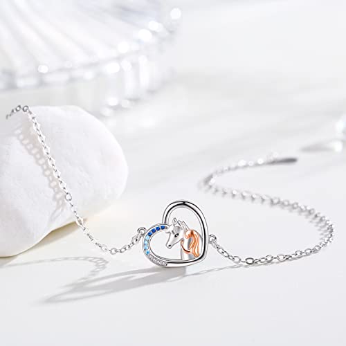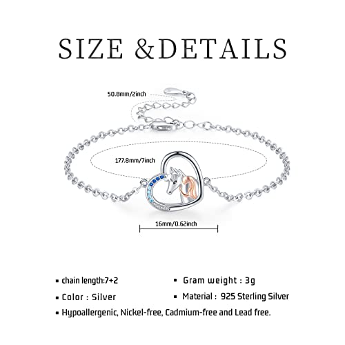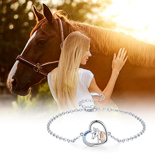 Bracciale da donna in argento 925 con ciondolo a forma di cavallo e ragazza, regolabile, regalo per ragazze e figlie, 7 inches, Zirconio